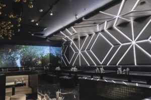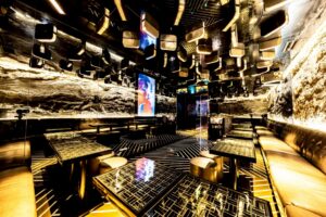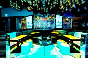 店内はネオン煌めく、近未来系でスタイリッシュなデザインが印象的です。