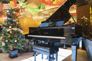 店内は豪華なシャンデリアやグランドピアノが置いてあり、高級感あり洗練された雰囲気です。