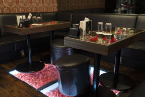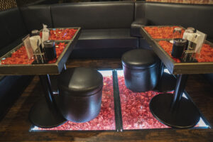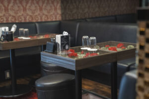 ポイント縦長の箱で、それぞれの卓が仕切られているため、被りのお客様の管理もしやすく、お客様同士が見えない席配置なのでホストが営業しやすくなっています。