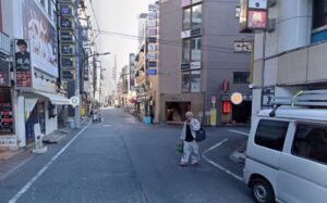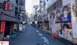 花道通りをしばらく歩いた先にあるホストの看板が立ち並ぶ交差点を左折します