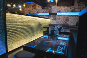 内装は有名デザイナー監修のデザインでおしゃれでスタイリッシュな雰囲気です。 お店の広さは60坪ほどで、平均的に中箱と言われる規模感となっています。