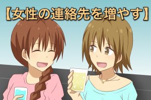 ナンパをする、街コンに参加する、マッチングサイト、SNSなどを使って女性の連絡先を増やしていきましょう。
